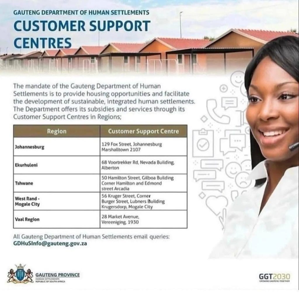 The Gauteng Department of Human Settlements (GHS) plays a crucial role in promoting sustainable, integrated human settlements across the province. One of the department’s most important services is its network of Customer Support Centres located in various regions. These centres are designed to assist the public with a wide range of housing-related queries, including subsidies, applications, and general housing advice.
