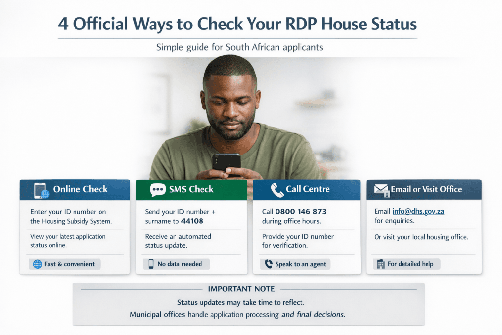 Applicants who have registered for government subsidised housing (RDP Houses) can track the progress of their applications through several official channels in 2026, according to the Department of Human Settlements. The update affects thousands of households in Gauteng who remain on municipal housing waiting lists and are seeking clarity on whether their applications have been approved, delayed, or require further documentation.
